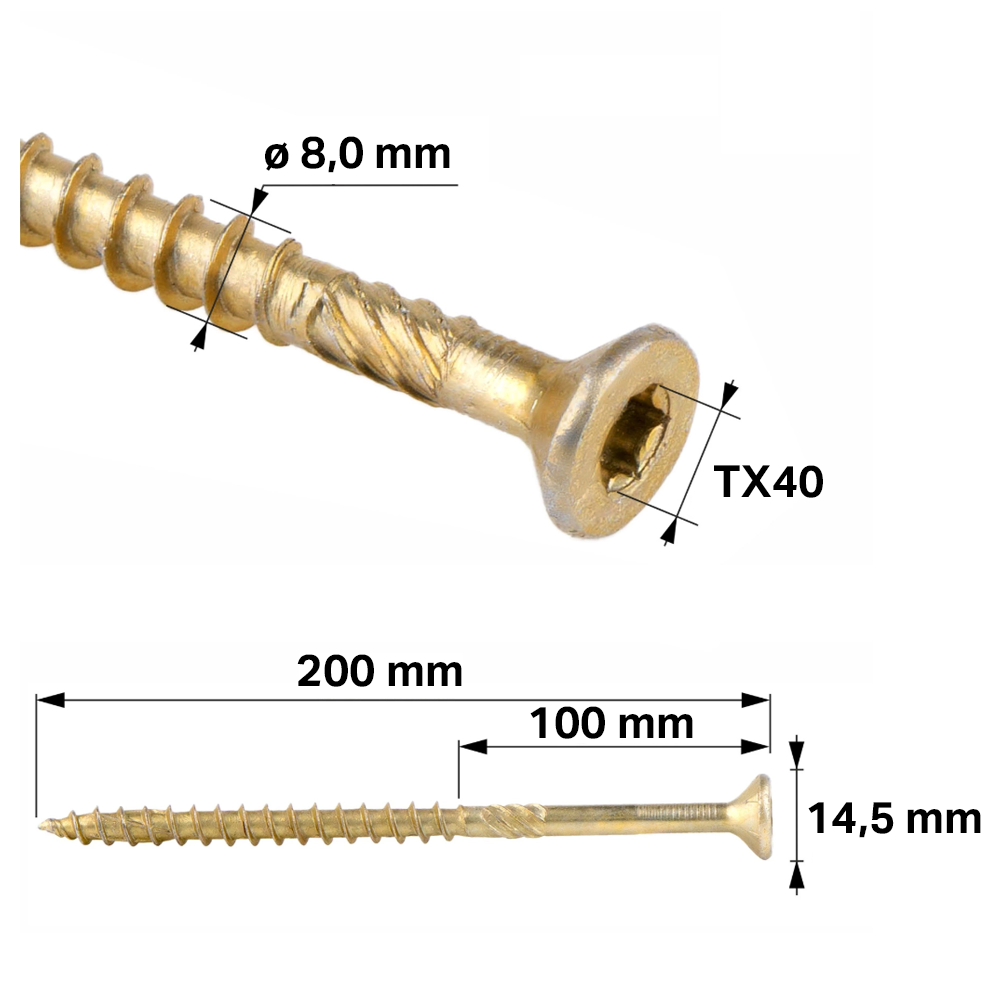- Wymiary wkręta - 8x200 mm