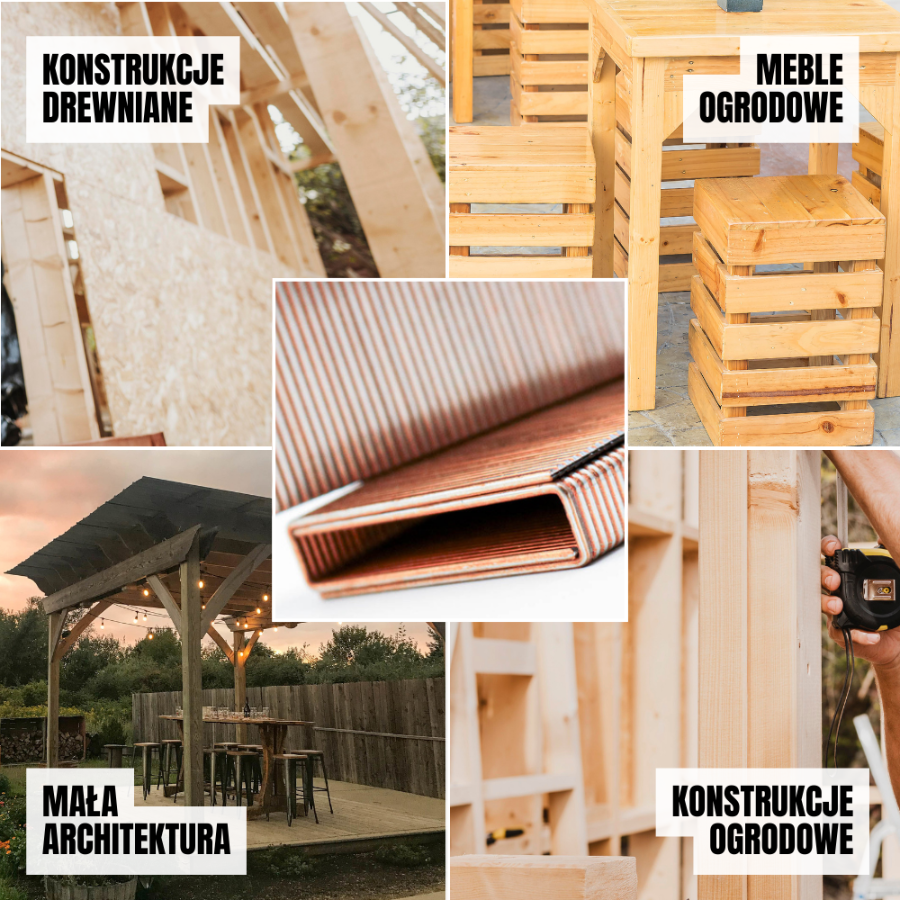 - Budownictwo ogrodowe: Produkcja płotów lameli, kratek oraz galanterii ogrodowej.